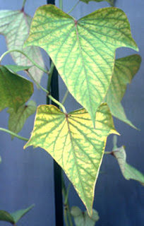 Magnesium is an important component of the chlorophyll process. Magnesium deficiency typically presents as interveinal chlorosis, or a yellowing of the space between the veins of the leaf, while the veins remain green. Generally there is no magnesium toxicity.